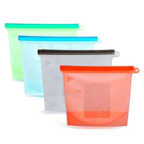 Almacenamiento de cremallera de silicona Ziplock fresco sin Bpa 100% reutilizable grado alimenticio congelador bolsas de verduras bolsa de aperitivos a prueba de fugas