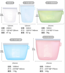 Las bolsas de silicona para el mantenimiento de alimentos frescos se pueden calentar en el microondas, bolsas lavables y almacenadas para el mantenimiento de alimentos frescos de tres piezas, sellado