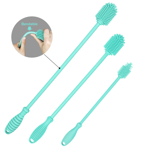 Juego de cepillos de limpieza de mango largo de silicona para botellas de agua para lavados de botellas efectivos